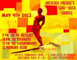 We’re back at Otto’s Shrunken Head on Saturday night, May 4, for Unsteady Freddie’s institution—the Surf-Rock Shindig. Show starts at 9, we’re on at midnight, and it’s free.