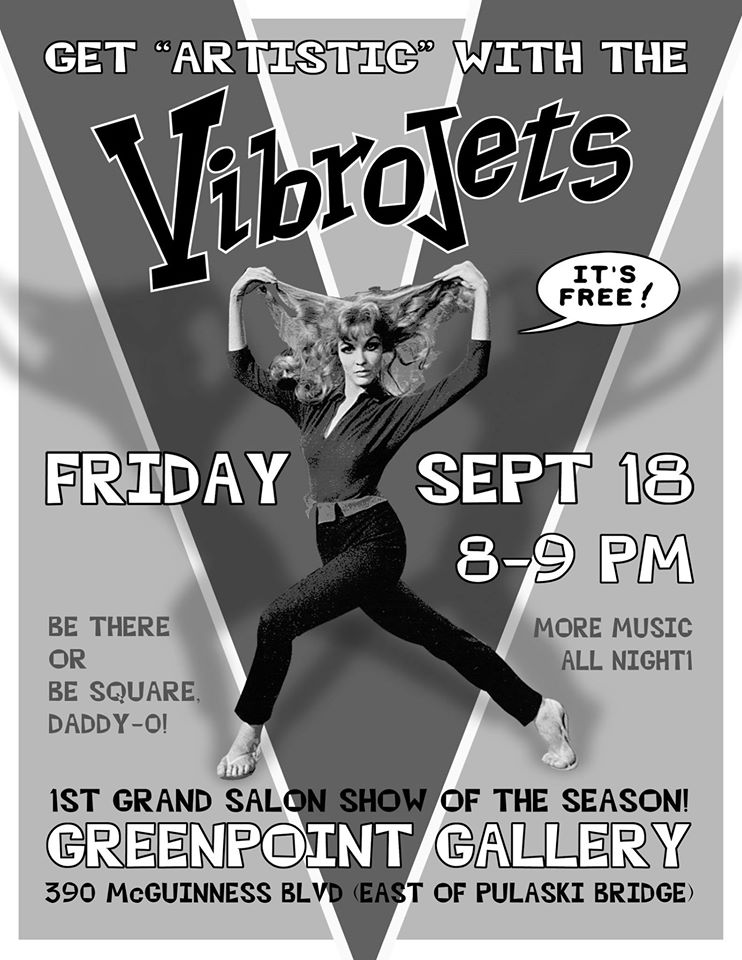 My friends the Vibrojets will be playing this Friday to kick off Greenpoint Gallery’s Grand Salon. Doors, and their set, are at 8pm upstairs. More music follows them upstairs, and there’s more happening downstairs, too. 392 McGuinness Boulevard in Greenpoint, near the Pulaski Bridge. Come see some art and rock out!